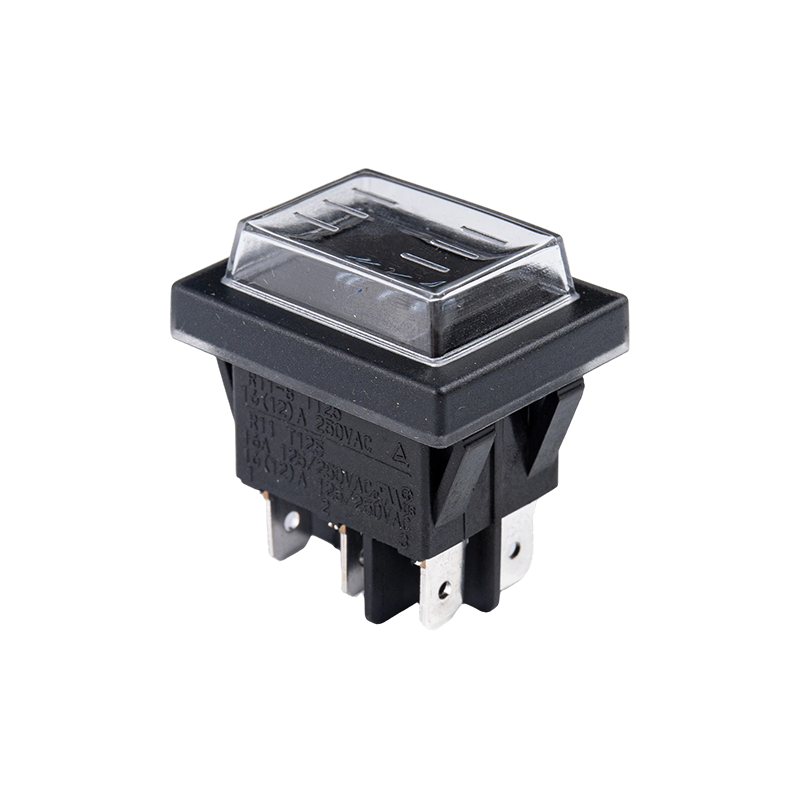 3. Popis produktu: Séria R11-8 je štandardný kolískový spínač s vlastným resetovaním dostupný vo viacerých konfiguráciách. Možnosti zahŕňajú prachotesné a vodotesné konštrukcie s ochrannými krytmi alebo vnútornými prachotesnými konštrukciami. Jeho všestranné využitie zahŕňa rôzne elektrické náradie, záhradnú techniku a čistiace zariadenia, ako sú stolové píly, stolové brúsky, elektrické kosačky na trávu, drviče konárov, vysokotlakové čističe, mokré/suché vysávače a je rovnako vhodný pre domáce spotrebiče, nástroje a kancelárske vybavenie.