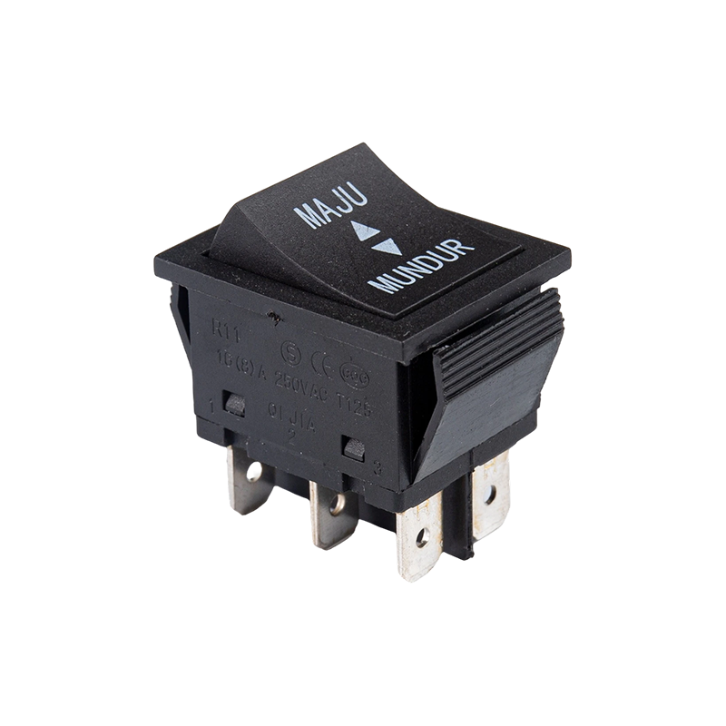 3. Popis produktu: Séria R11-8 je kolískový spínač s integrovanou prachotesnou štruktúrou, ktorá ponúka rozsiahlu všestrannosť. Je široko používaný v rôznom elektrickom náradí, záhradnom náradí a čistiacich zariadeniach, ako sú stolové píly, stolové brúsky, elektrické kosačky na trávu, drviče konárov, tlakové čističe, mokré/suché vysávače a ďalšie. Je rovnako vhodný pre domáce spotrebiče, nástroje, kancelárske vybavenie, elektrické autíčka, generátory a podobné aplikácie.