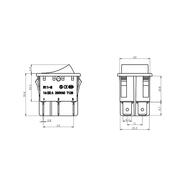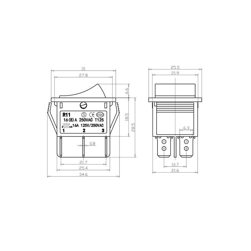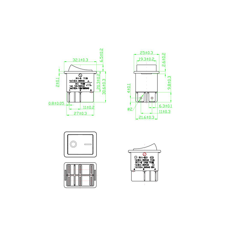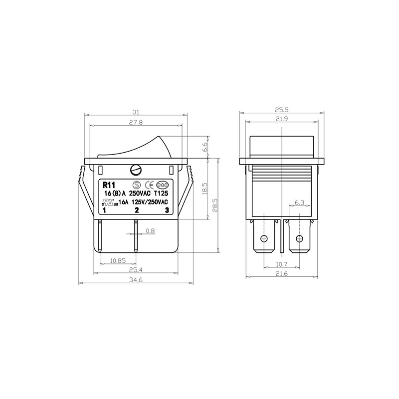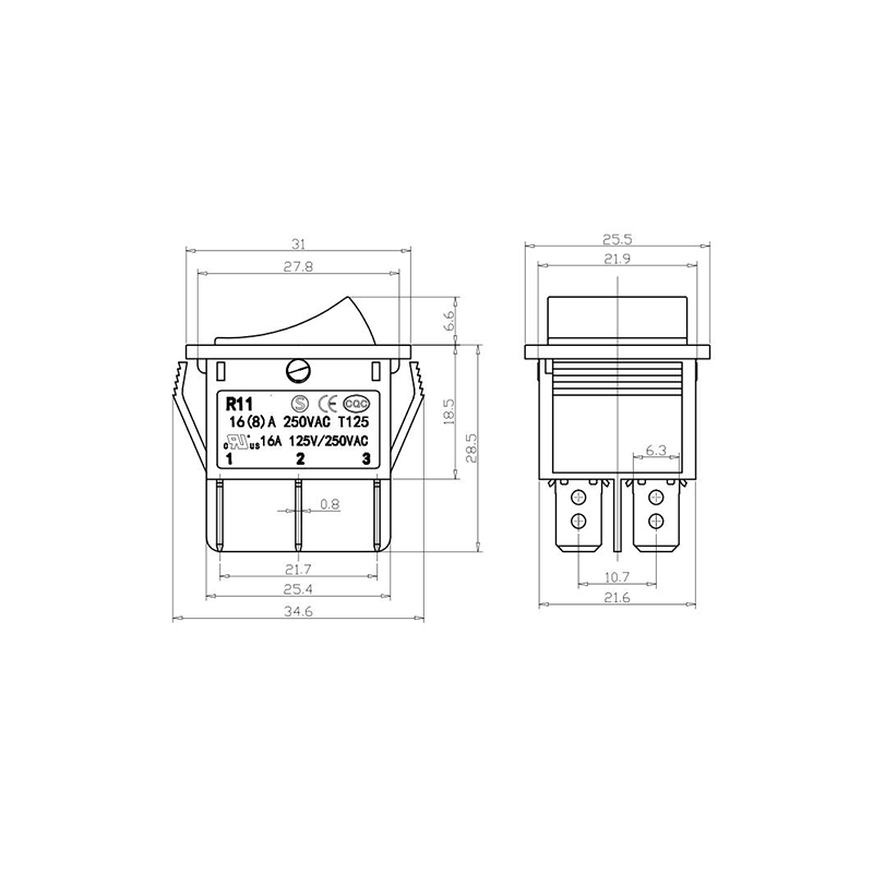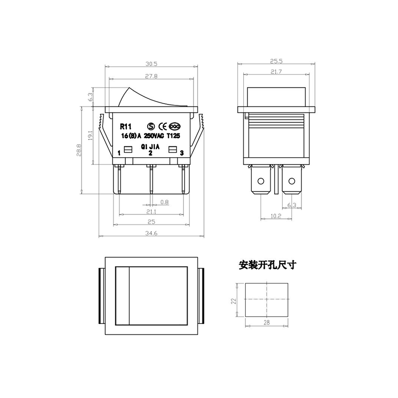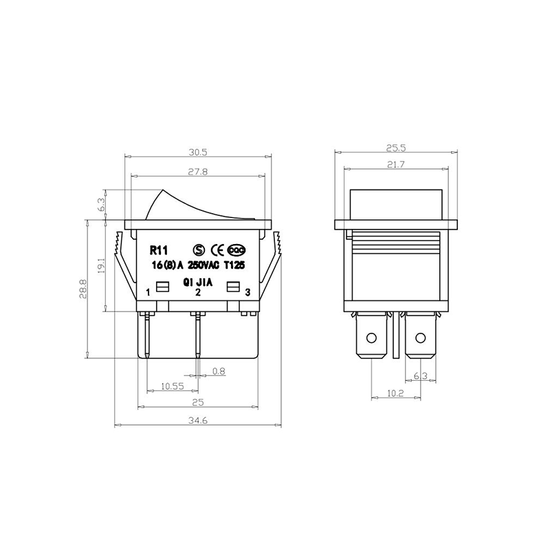 Shanghai Qijia Electronics Co., Ltd. Domov / Produkty / Kolískový spínač / Kolískový spínač R11