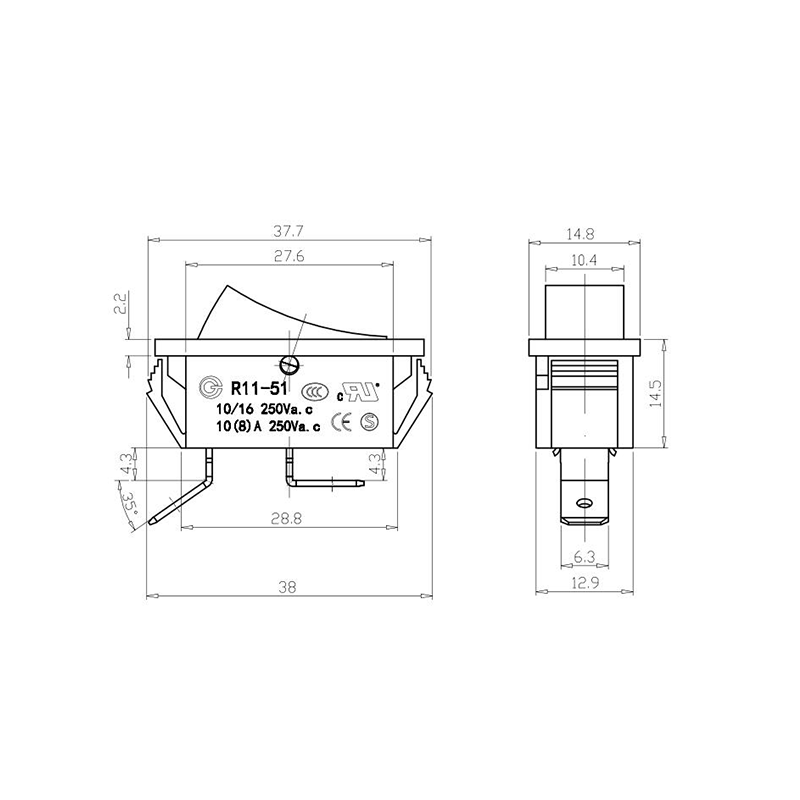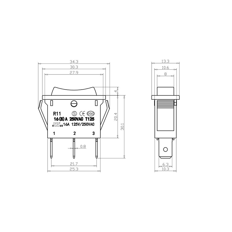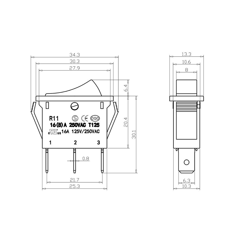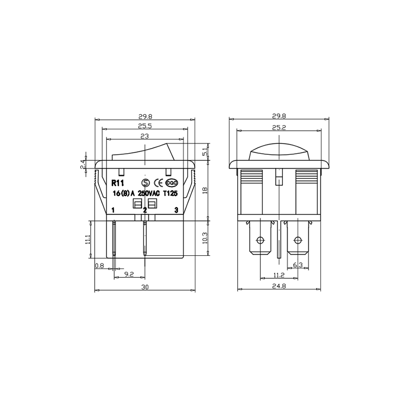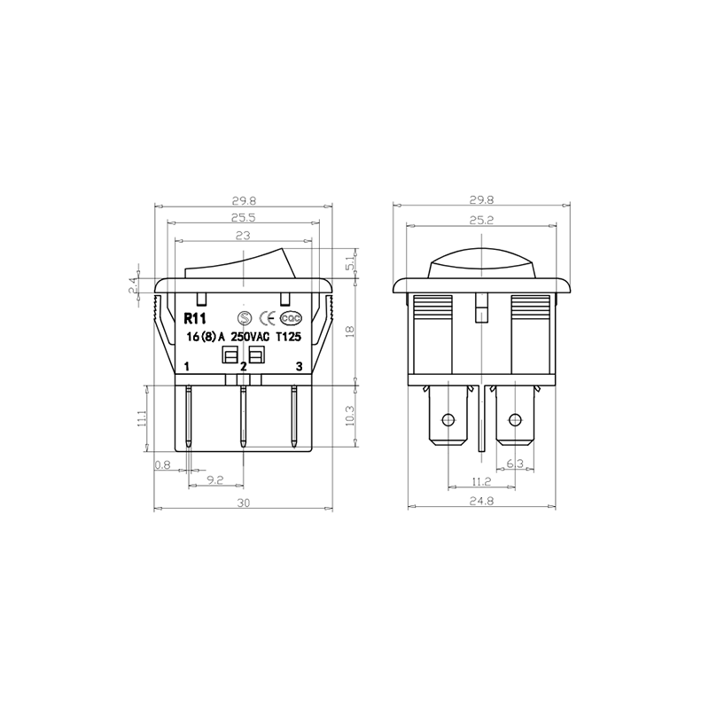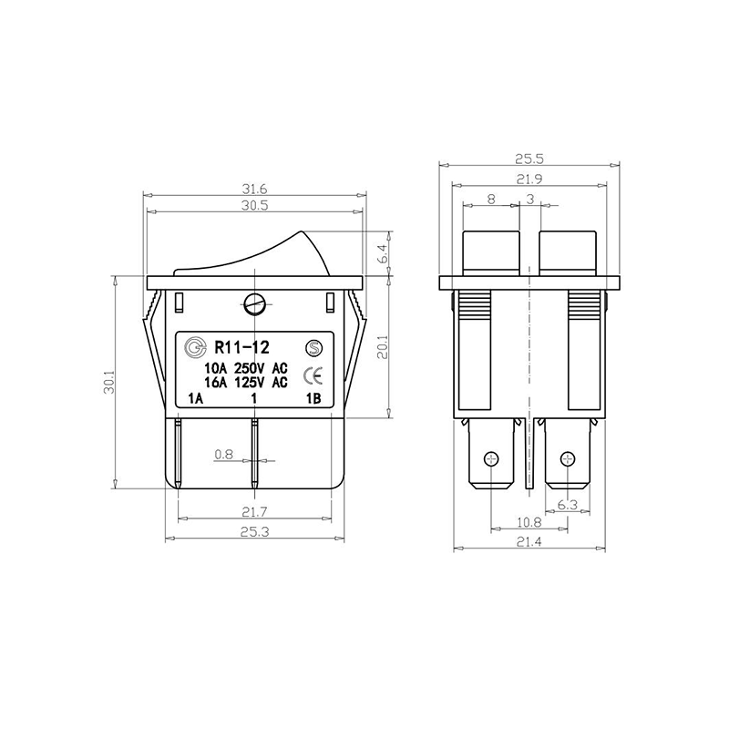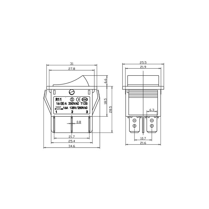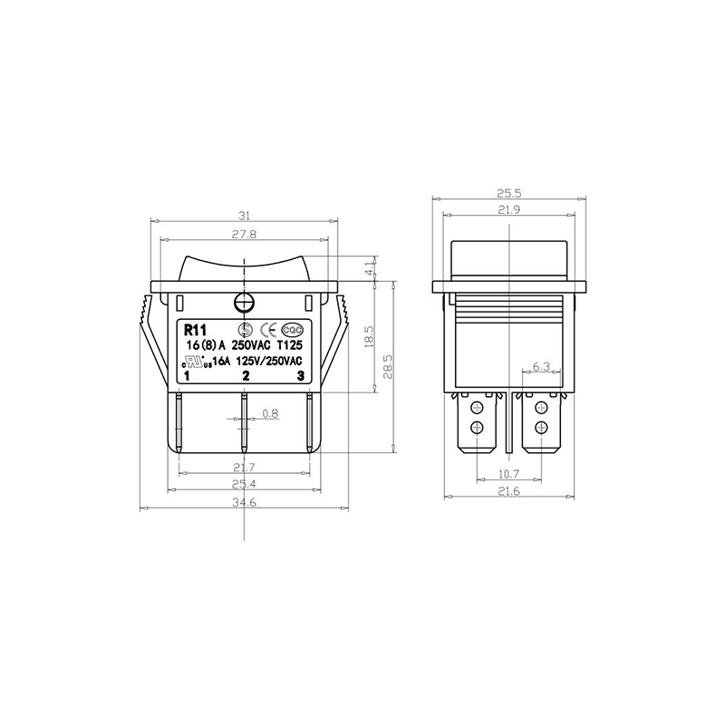 Shanghai Qijia Electronics Co., Ltd. Domov / Produkty / Kolískový spínač / Kolískový spínač R11