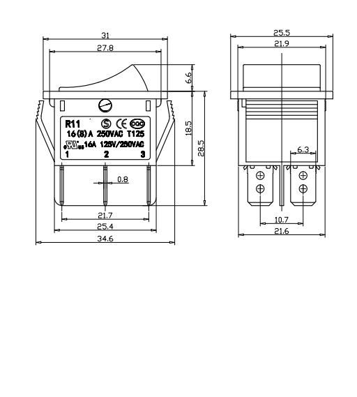 Shanghai Qijia Electronics Co., Ltd. Domov / Produkty / Kolískový spínač / Kolískový spínač R11 / Kolískový spínač R11-22